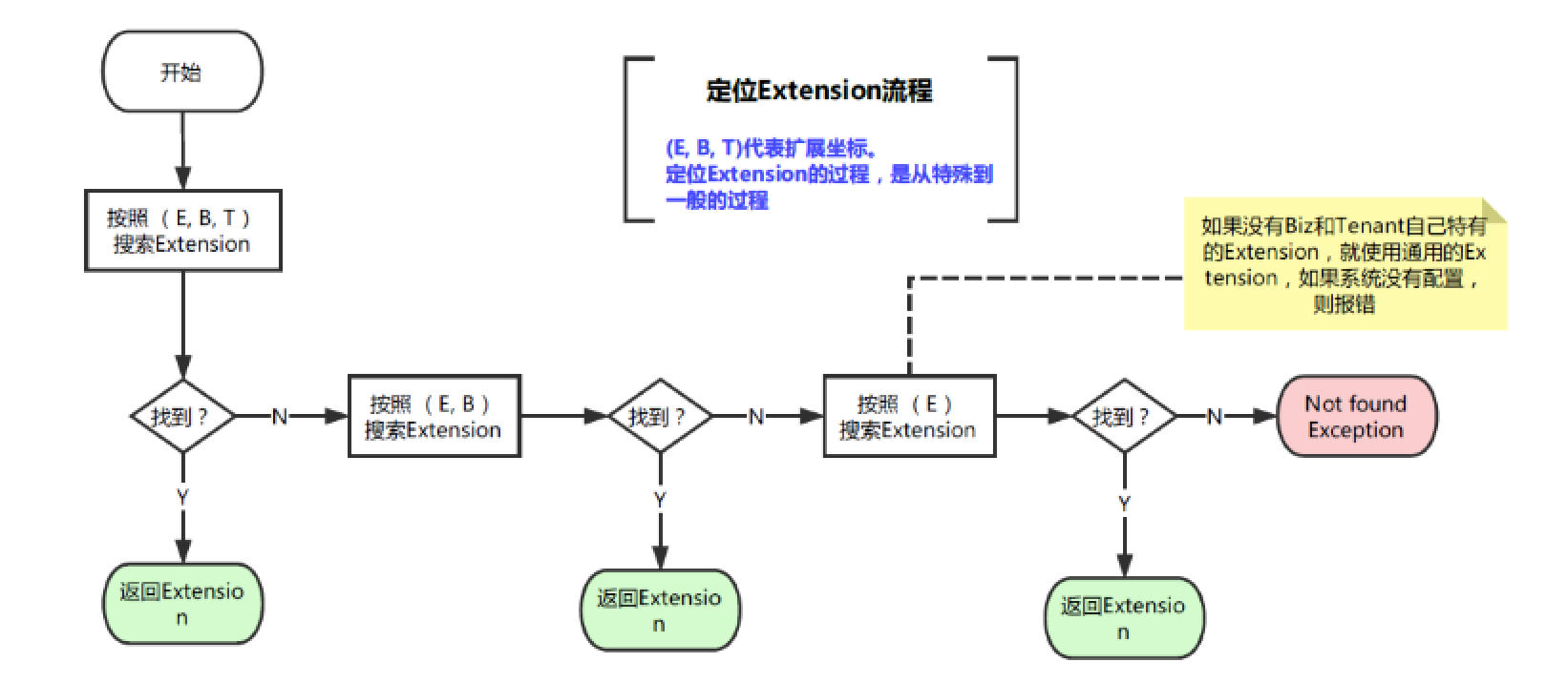 }在上面的代码中,框架在runtime的时候之所以可以找到对应的扩展实现,主要是靠@Extension(bizCode = BizCode.ICBU)这个Annotation, 因为在系统启动时,Bootstrap会扫描所有的扩展实现并注册并缓存到HashMap里面。