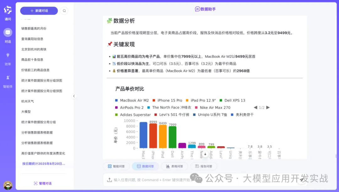 - ✅ 内置 ECharts / AntV 图表问答 + CSV 表格问答