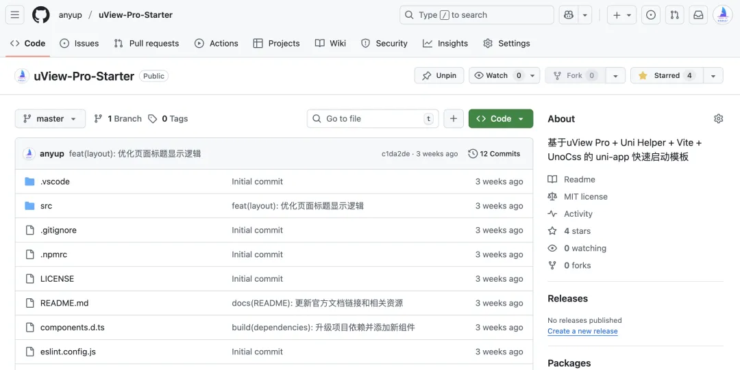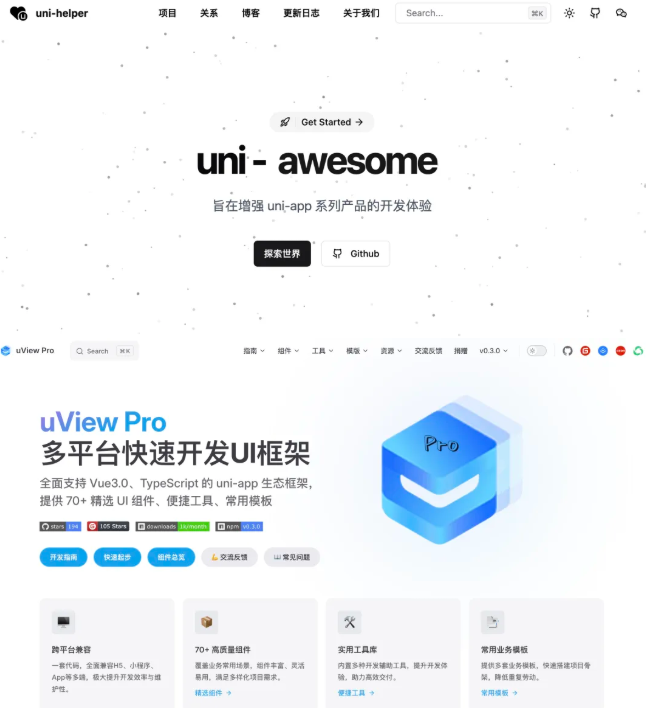 是官方维护的快速启动模板,目前集成了 create-uni、uView Pro、UnoCSS 与 uni-helper 常用插件,适合作为企业或个人项目的起点。核心优势包括: